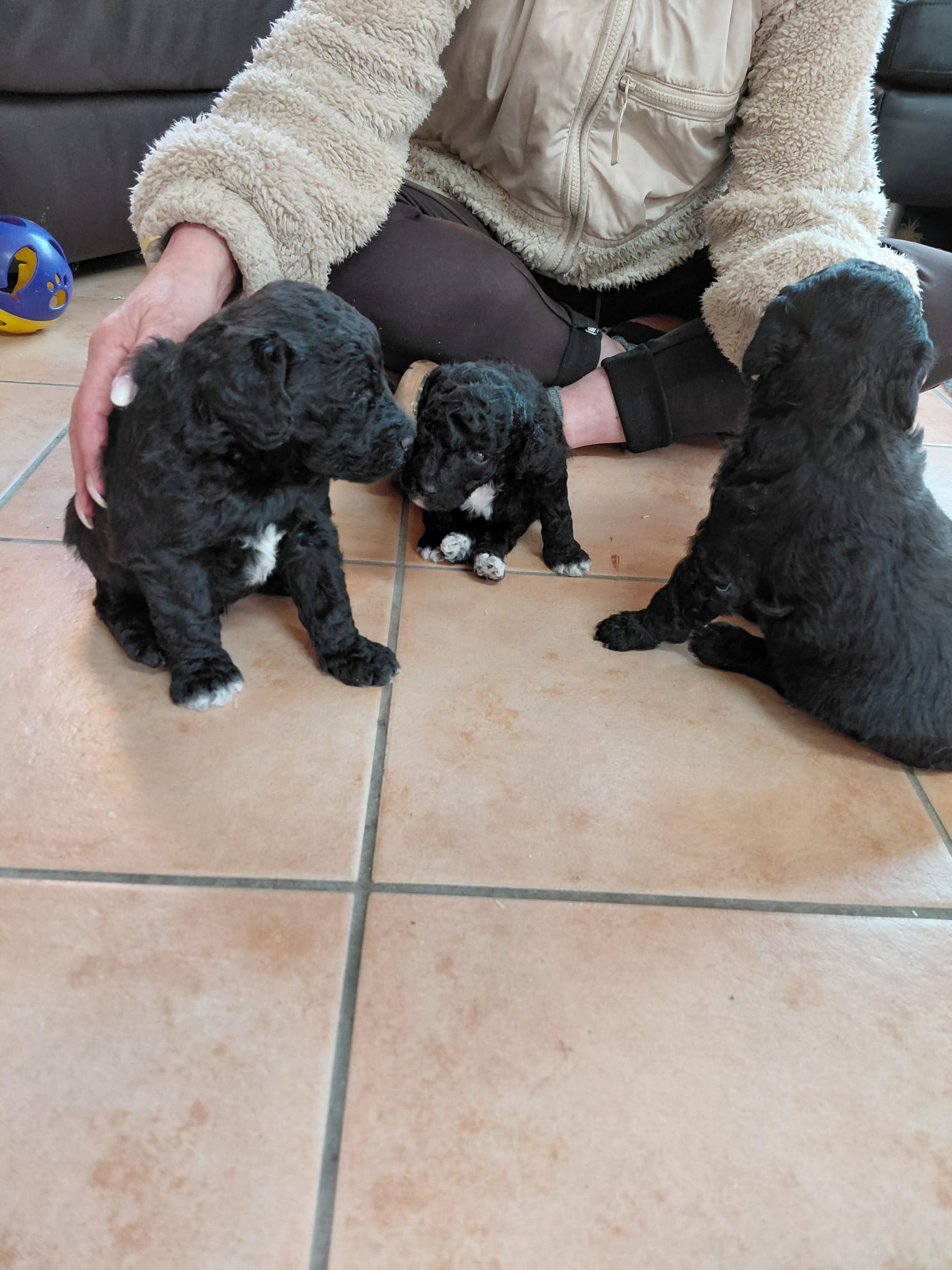 Es ist uns ein Anliegen, dass wir die zukünftigen Besitzer unserer Labradoodle-Welpen so früh wie möglich kennenlernen. Offene Fragen können im Voraus geklärt werden. Ab der dritten Woche dürfen die zukünftigen Besitzer endlich die Labradoodle-Welpen besuchen. Die Labradoodle-Welpen kommen im Welpenzimmer zur Welt und werden rund um die Uhr von mir betreut. In aller Ruhe werden sie verschiedenen Umweltreizen ausgesetzt, um ihre Entwicklung zu einem stabilen Hund zu fördern.