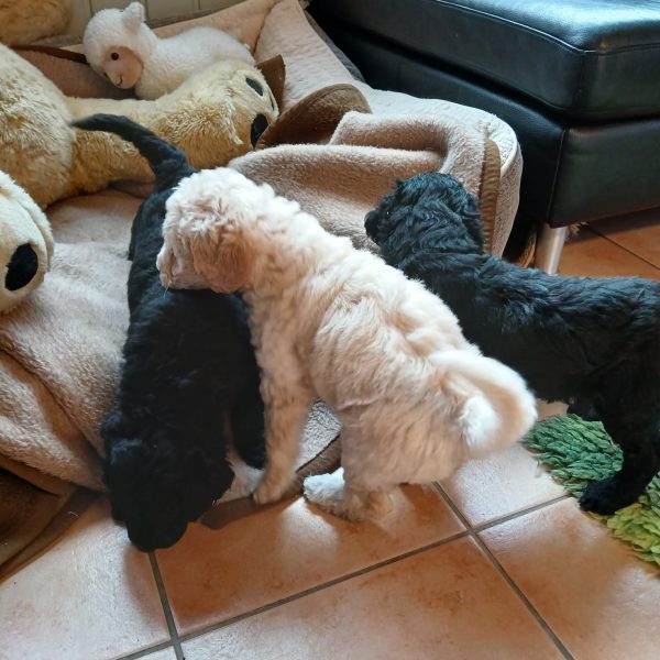 Es ist uns ein Anliegen, dass wir die zukünftigen Besitzer unserer Labradoodle-Welpen so früh wie möglich kennenlernen. Offene Fragen können im Voraus geklärt werden. Ab der dritten Woche dürfen die zukünftigen Besitzer endlich die Labradoodle-Welpen besuchen. Die Labradoodle-Welpen kommen im Welpenzimmer zur Welt und werden rund um die Uhr von mir betreut. In aller Ruhe werden sie verschiedenen Umweltreizen ausgesetzt, um ihre Entwicklung zu einem stabilen Hund zu fördern.